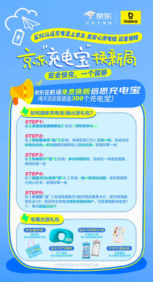 随着民航新规落地,旅客对充电宝的换新需求持续增加。近日,京东联合倍思在广州白云机场一号航站楼出发厅三层中庭推出“充电宝换新局”专场活动。活动期间每日提供300个经过国家3c认证的安全充电宝,为旅客免费更换存在安全隐患的非标产品,让每一次出行都能能量满格、安心随行。