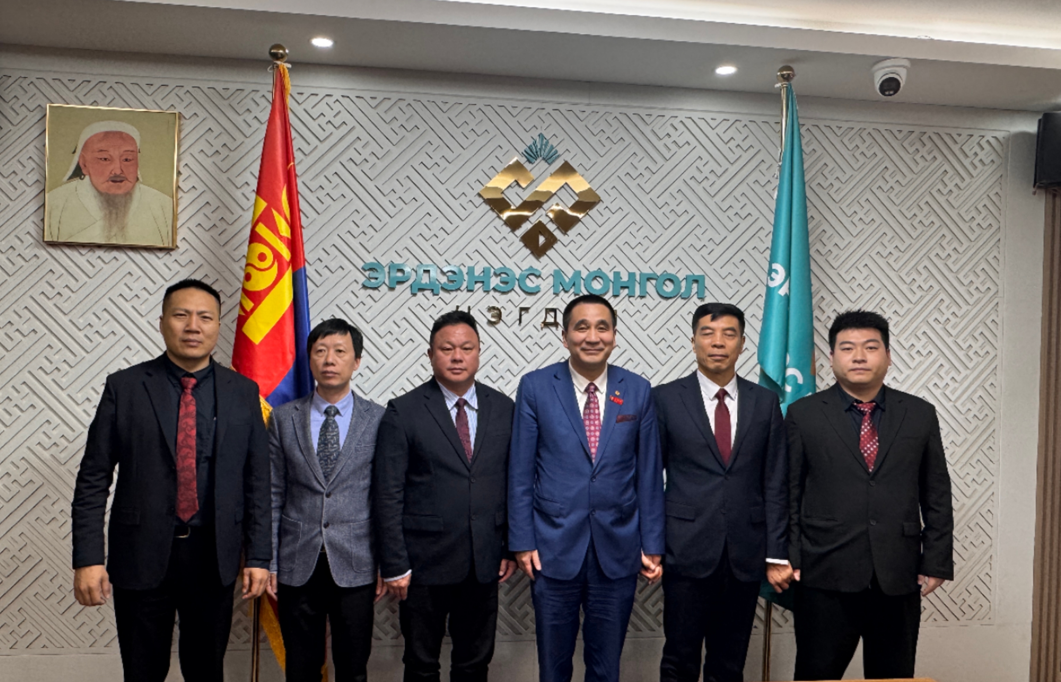 华国中主席和陈振江、刘学海、黄卓然、杨宇、陈兆全在蒙古国珍宝集团调研。