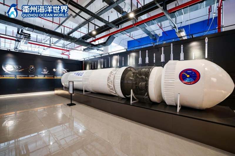 衢州海洋世界作为海洋航天航空科普教育基地,在四楼还设置了航天航空馆。穿越时空长廊,见证航天发展历程,航空航天城以"星辰探索・科学启航"为核心理念,依托五大主题航天展厅,深度融合科普教育、实践体验与社会服务,致力于构建"科技-教育-文化"三位一体综合性生态平台,打造沉浸式航天科技文化体验空间。这也是全国首家将海洋与航天航空相结合的科普馆。
